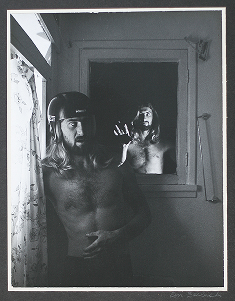 Another Palomar College photo class project. With the camera shutter locked open, I fired a remote flash behind the bathroom shower curtain, ran outside to the bathroom and fired off the flash again, all on the same frame of film.