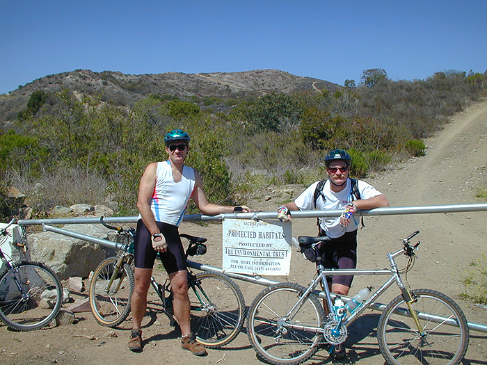 We used to be able to ride from my shop on the Coast Highway in Carlsbad all the way out here without riding on pavement. Now it's all closed.